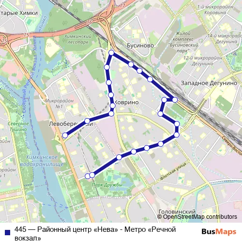 Bus 445 - Районный центр «Нева» - Метро «Речной вокзал»: Full Schedule in Khimki