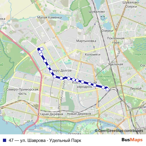 Click here to view the nearest 47 - ул. Шаврова - Удельный Парк tram stop.