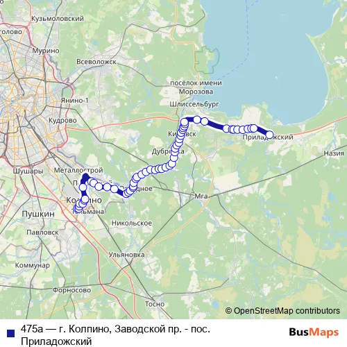 Click here to view the nearest 475а - г. Колпино, Заводской пр. - пос. Приладожский bus stop.