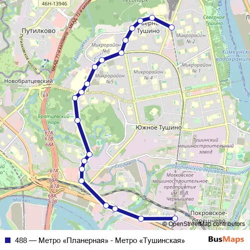 Bus 488 - Метро «Планерная» - Метро «Тушинская» Schedule in Khimki