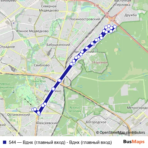 Click here to view the nearest 544 - Вднх (главный вход) - Вднх (главный вход) bus stop.