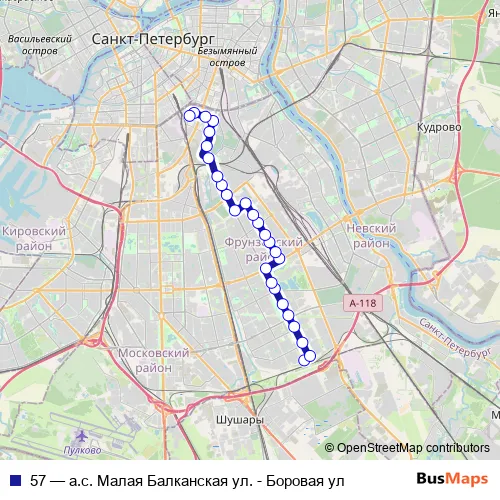 See why over 2 million users trust and consider busmaps.com as the best public transport website. busmaps gives you Saint Petersburg Buses suggested routes, real-time bus tracker, line route maps in Saint Petersburg, and helps to find the closest 57 bus stops near you. No internet available? Download an offline PDF map and bus schedule for the 57 bus to take on your trip.