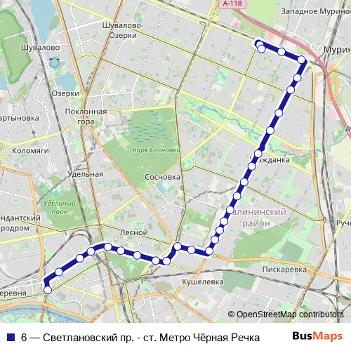 ст. Метро Чёрная Речка – Конечная Станция Светлановский пр. (Посадки И Высадки Нет)