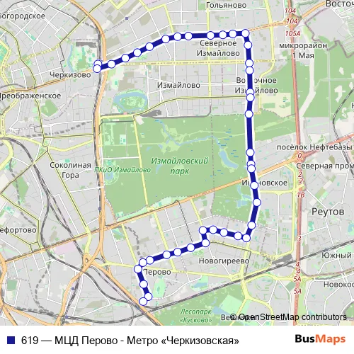 Bus 619 - МЦД Перово - Метро «Черкизовская» Schedule in Reutov