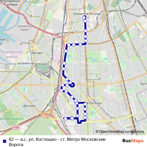 Bus 62 - а.с. ул. Костюшко - ст. Метро Московские Ворота Schedule in Saint Petersburg