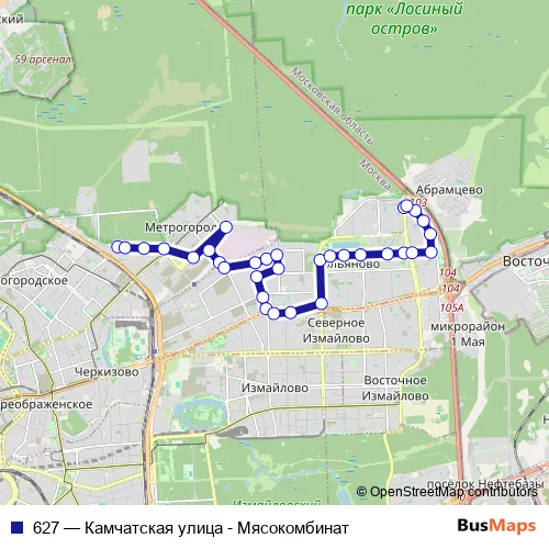 Bus 627 - Камчатская улица - Мясокомбинат Schedule in Moscow