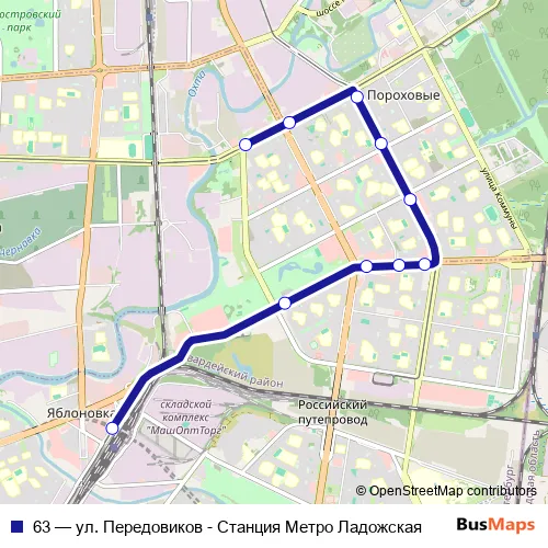 Click here to view the nearest 63 - ул. Передовиков - Станция Метро Ладожская tram stop.