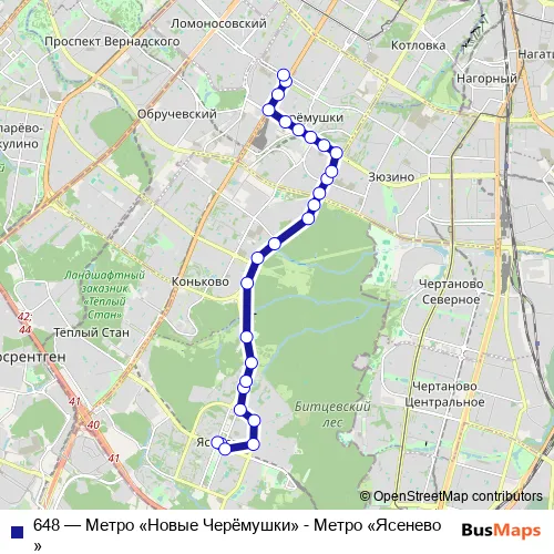 648 (Метро «Новые Черёмушки» - Метро «Ясенево») Bus in Cheremushki