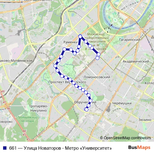 Bus 661 - Улица Новаторов - Метро «Университет» Schedule in Moscow