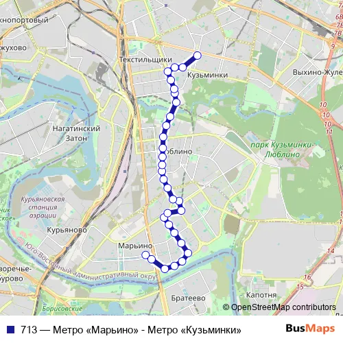 Click here to view the nearest 713 - Метро «Марьино» - Метро «Кузьминки» bus stop.