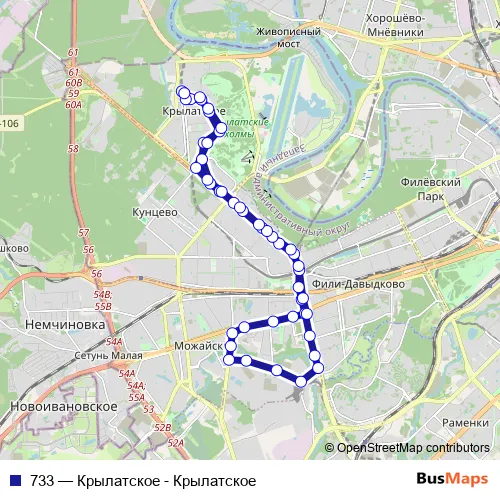 Bus 733 - Крылатское - Крылатское Schedule in Moscow
