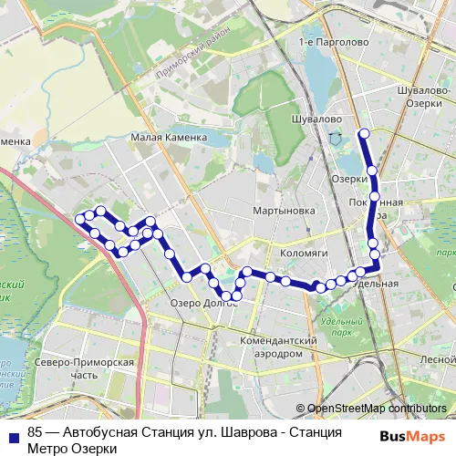 Bus 85 - Автобусная Станция ул. Шаврова - Станция Метро Озерки: Full Schedule in Saint Petersburg
