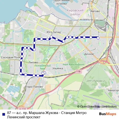 See why over 2 million users trust and consider busmaps.com as the best public transport website. busmaps gives you Saint Petersburg Buses suggested routes, real-time bus tracker, line route maps in Saint Petersburg, and helps to find the closest 87 bus stops near you. No internet available? Download an offline PDF map and bus schedule for the 87 bus to take on your trip.