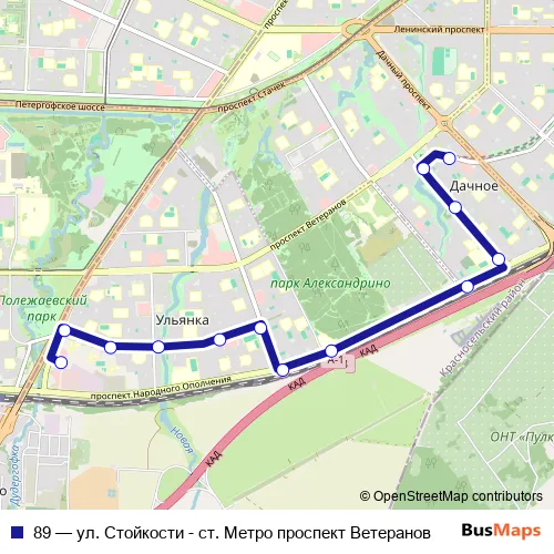 Click here to view the nearest 89 - ул. Стойкости - ст. Метро проспект Ветеранов bus stop.