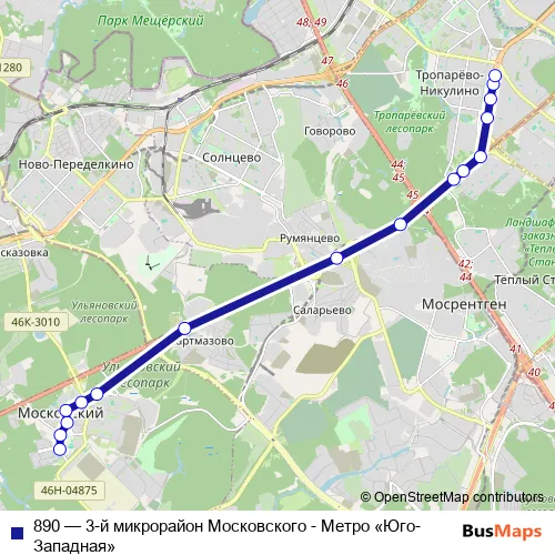 Bus 890 - 3-й микрорайон Московского - Метро «Юго-Западная»: Full Schedule in Moscow