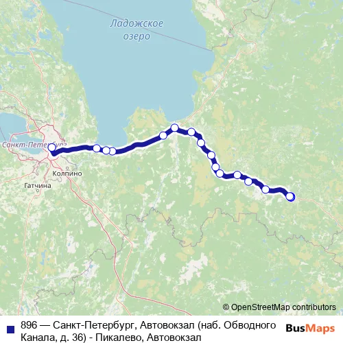 Bus 896 - Санкт-Петербург, Автовокзал (наб. Обводного Канала, д. 36) - Пикалево, Автовокзал: Full Schedule in Pikalevo