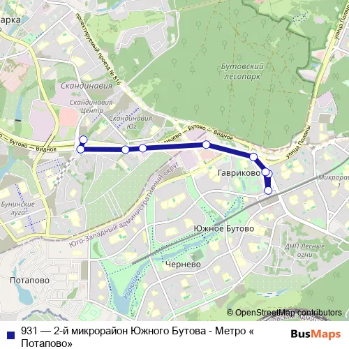 Click here to view the nearest 931 - 2-й микрорайон Южного Бутова - Метро «Потапово» bus stop.