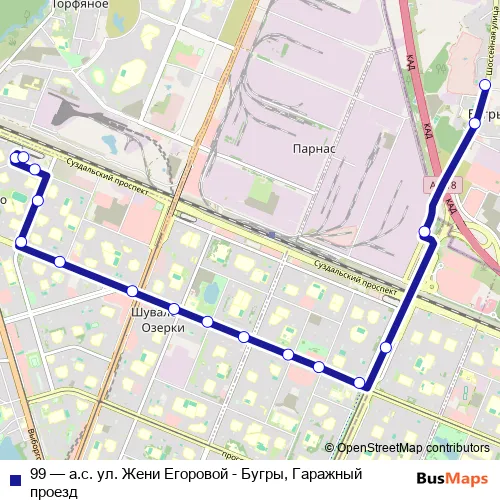 See why over 2 million users trust and consider busmaps.com as the best public transport website. busmaps gives you Saint Petersburg Buses suggested routes, real-time bus tracker, line route maps in Saint Petersburg, and helps to find the closest 99 bus stops near you. No internet available? Download an offline PDF map and bus schedule for the 99 bus to take on your trip.