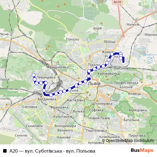 Bus А20 - вул. Суботівська - вул. Польова in Lviv: Stops & Timetable