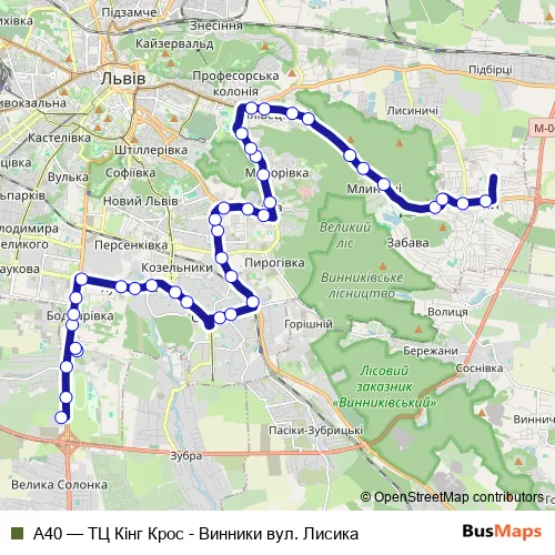 Bus А40 - ТЦ Кінг Крос - Винники вул. Лисика in Lviv: Stops & Timetable