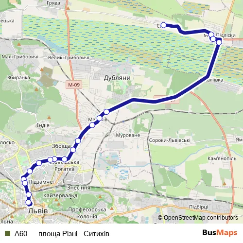 Bus А60 - площа Різні - Ситихів in Lviv: Stops & Timetable