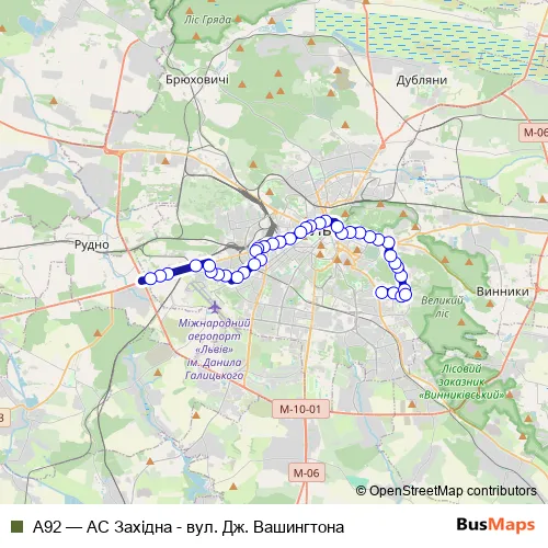 Bus А92 - АС Західна - вул. Дж. Вашингтона: Full Schedule in Lviv