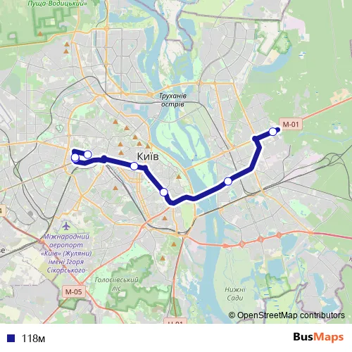 See why over 2 million users trust and consider busmaps.com as the best public transport website. busmaps gives you Kyiv Buses suggested routes, real-time bus tracker, line route maps in Kyiv, and helps to find the closest 118м bus stops near you. No internet available? Download an offline PDF map and bus schedule for the 118м bus to take on your trip.