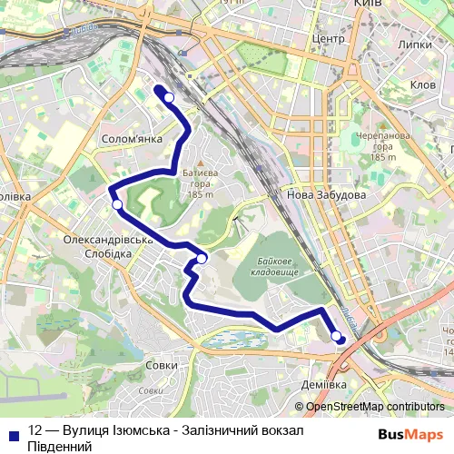 Bus 12 - Вулиця Ізюмська - Залізничний вокзал Південний in Kyiv: Stops & Timetable