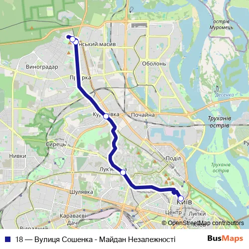 Trolleybus 18 - Вулиця Сошенка - Майдан Незалежності in Kyiv: Stops & Timetable