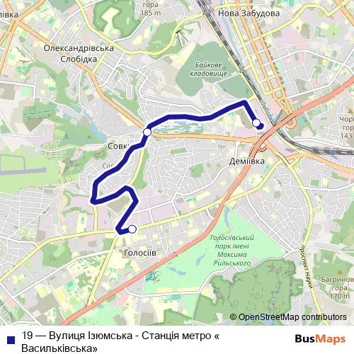 Bus 19 - Вулиця Ізюмська - Станція метро «Васильківська» in Kyiv: Stops & Timetable