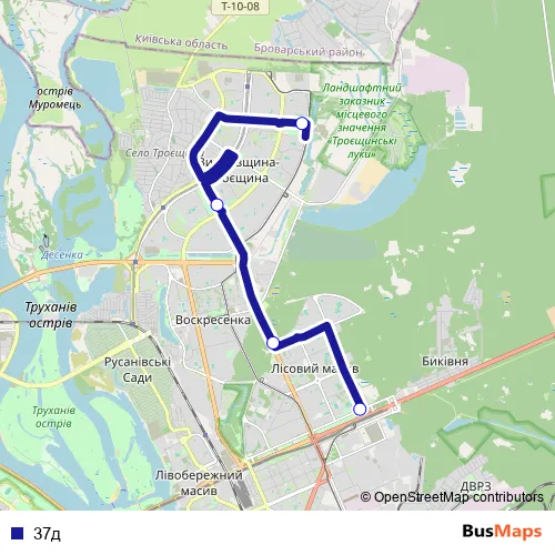 See why over 2 million users trust and consider busmaps.com as the best public transport website. busmaps gives you Kyiv Buses suggested routes, real-time bus tracker, line route maps in Kyiv, and helps to find the closest 37д bus stops near you. No internet available? Download an offline PDF map and bus schedule for the 37д bus to take on your trip.