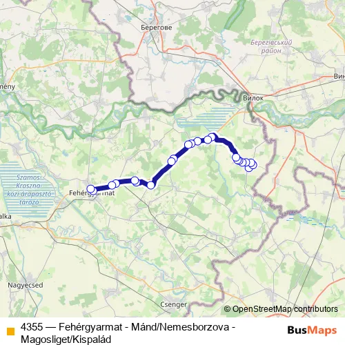 Bus 4355 - Fehérgyarmat - Mánd/Nemesborzova - Magosliget/Kispalád in Fehergyarmat: Stops & Timetable