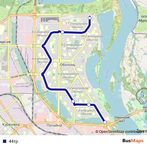 See why over 2 million users trust and consider busmaps.com as the best public transport website. busmaps gives you Kyiv Buses suggested routes, real-time bus tracker, line route maps in Kyiv, and helps to find the closest 44тр bus stops near you. No internet available? Download an offline PDF map and bus schedule for the 44тр bus to take on your trip.