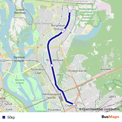 See why over 2 million users trust and consider busmaps.com as the best public transport website. busmaps gives you Kyiv Buses suggested routes, real-time bus tracker, line route maps in Kyiv, and helps to find the closest 50кр bus stops near you. No internet available? Download an offline PDF map and bus schedule for the 50кр bus to take on your trip.