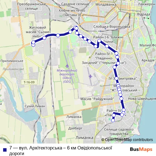 Click here to view the nearest 7 - вул. Архітекторська – 6 км Овідіопольської дороги bus stop.