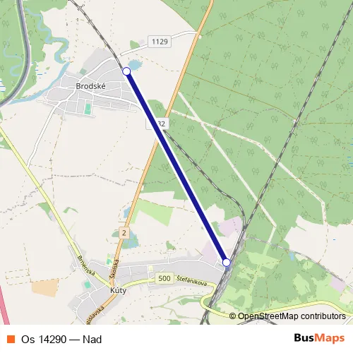 The first stop of the Os 14290 rail route is Kúty and the last stop is Brodské. Os 14290 (Nad) is operational during denne.