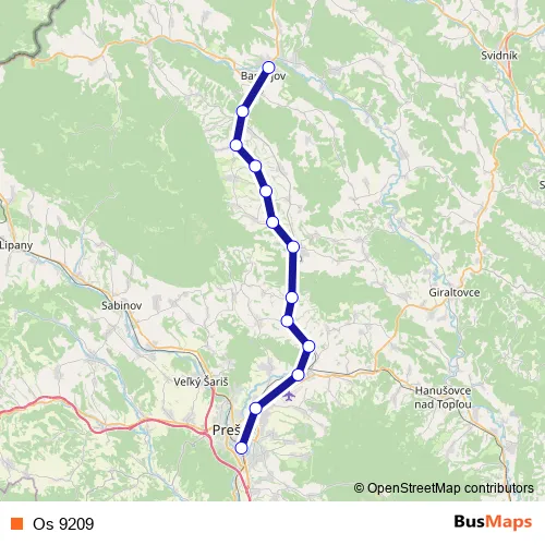 The first stop of the Os 9209 rail route is Prešov and the last stop is Bardejov. Os 9209 is operational during denne.