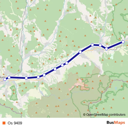 The first stop of the Os 9409 rail route is Humenné and the last stop is Stakčín. Os 9409 is operational during denne.