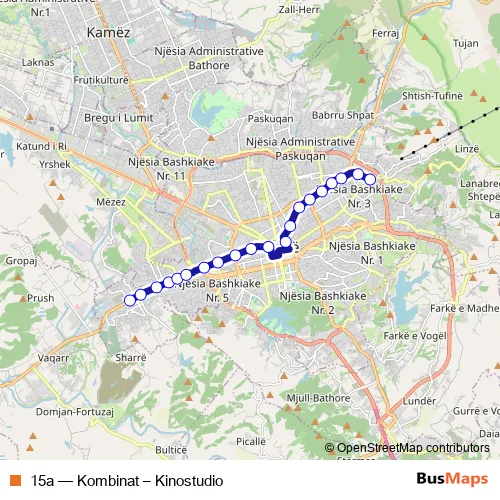 Bus 15a - Kombinat – Kinostudio Schedule in Tirana