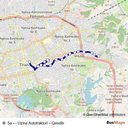 See why over 2 million users trust and consider busmaps.com as the best public transport website. busmaps gives you Tirana Buses suggested routes, real-time bus tracker, line route maps in Tirana, and helps to find the closest 5a bus stops near you. No internet available? Download an offline PDF map and bus schedule for the 5a bus to take on your trip.