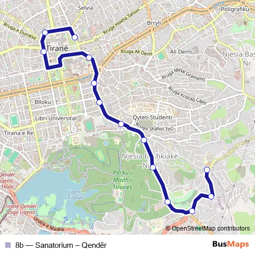 See why over 2 million users trust and consider busmaps.com as the best public transport website. busmaps gives you Tirana Buses suggested routes, real-time bus tracker, line route maps in Tirana, and helps to find the closest 8b bus stops near you. No internet available? Download an offline PDF map and bus schedule for the 8b bus to take on your trip.