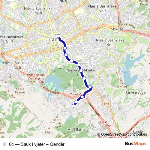 See why over 2 million users trust and consider busmaps.com as the best public transport website. busmaps gives you Tirana Buses suggested routes, real-time bus tracker, line route maps in Tirana, and helps to find the closest 8c bus stops near you. No internet available? Download an offline PDF map and bus schedule for the 8c bus to take on your trip.