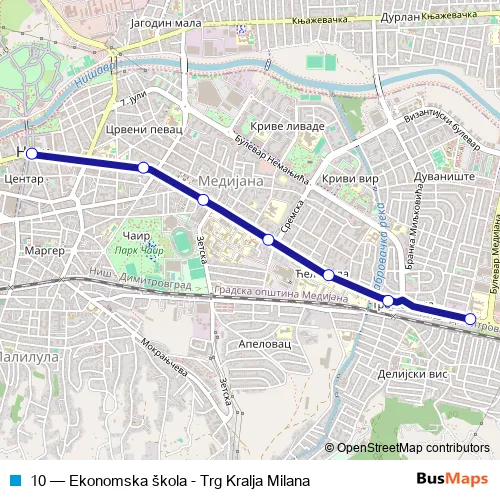 See why over 2 million users trust and consider busmaps.com as the best public transport website. busmaps gives you Nis Buses suggested routes, real-time bus tracker, line route maps in Nis, and helps to find the closest 10 bus stops near you. No internet available? Download an offline PDF map and bus schedule for the 10 bus to take on your trip.