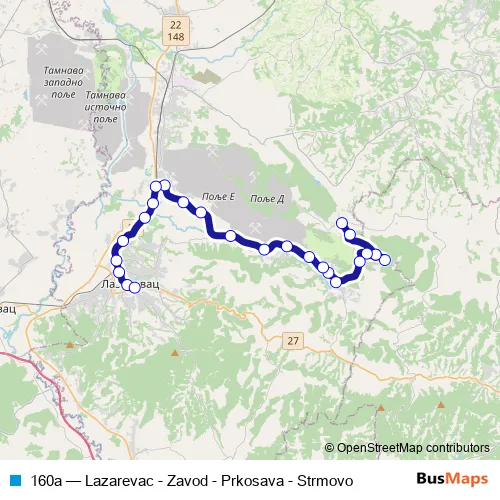 The first stop of the 160a bus route is Strmovo - Spomenik and the last stop is Lazarevac As. 160a (Lazarevac - Zavod - Prkosava - Strmovo) is operational during svakodnevno.