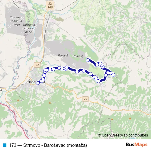 Click here to view the nearest 173 - Strmovo - Baroševac (montaža) bus stop.