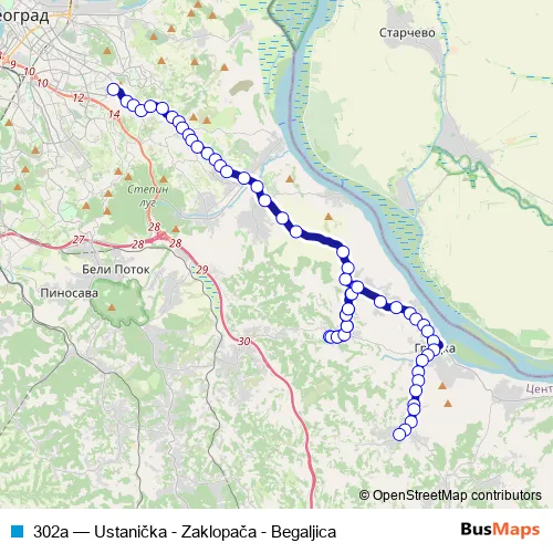 Bus 302a - Ustanička - Zaklopača - Begaljica Schedule in Grocka