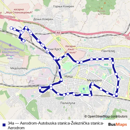 Bus 34a - Aerodrom-Autobuska stanica-Železnička stanica-Aerodrom: Full Schedule in Nis