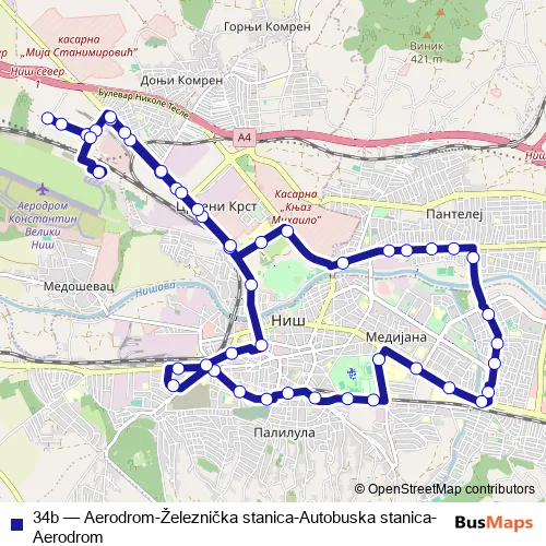 Bus 34b - Aerodrom-Železnička stanica-Autobuska stanica-Aerodrom: Full Schedule in Nis