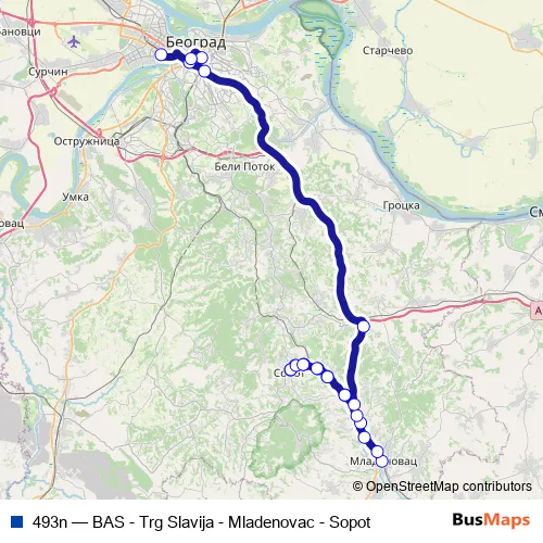 Click here to view the nearest 493n - BAS - Trg Slavija - Mladenovac - Sopot bus stop.