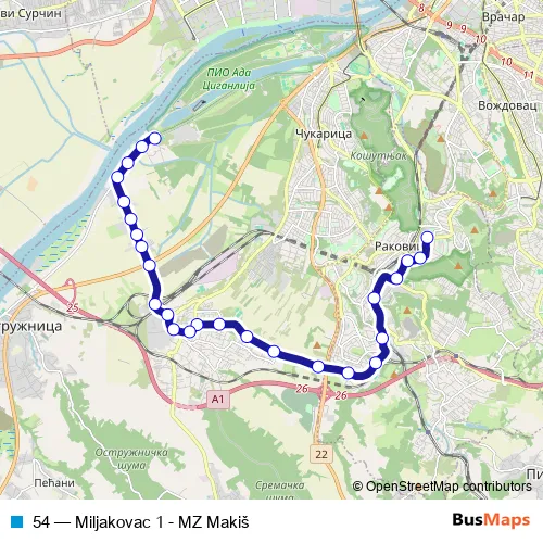 See why over 2 million users trust and consider busmaps.com as the best public transport website. busmaps gives you Belgrade Buses suggested routes, real-time bus tracker, line route maps in Belgrade, and helps to find the closest 54 bus stops near you. No internet available? Download an offline PDF map and bus schedule for the 54 bus to take on your trip.